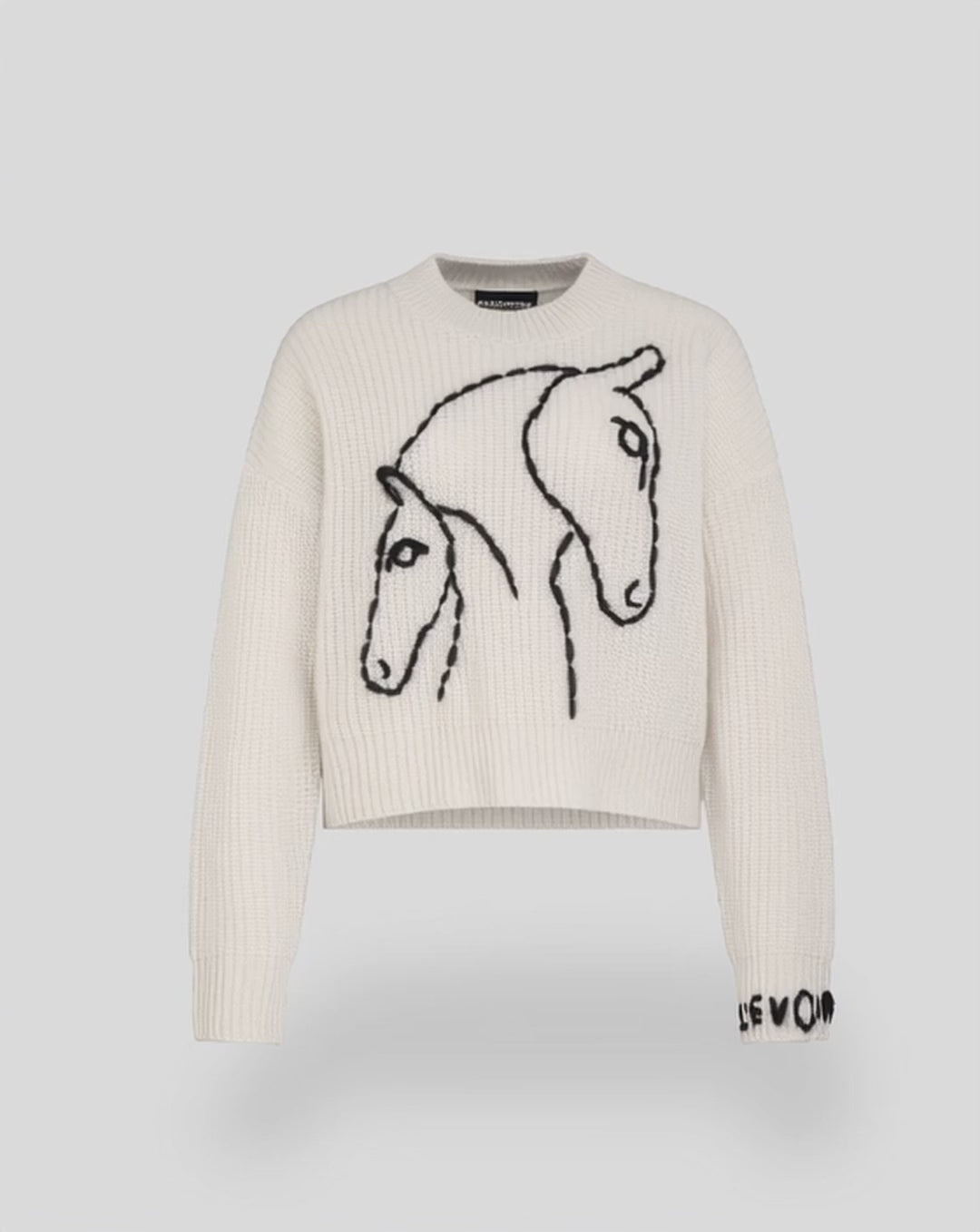 Ein Pullover, der die tiefe Verbindung zwischen einer Stute und ihrem Fohlen aufgreift. Das kunstvoll gestickte Motiv erzählt von Anmut, Vertrauen und der stillen Eleganz des Miteinanders. Gefertigt aus feinster Alpakawolle und von Hand bestickt, wird jedes Stück zu einem unverwechselbaren Unikat – weich wie eine Umarmung, zeitlos wie die Geschichte, die es in sich trägt.